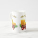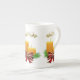 jolie porcelaine, bonne dimension effet brillant bien dans l'ensemble. Le motif et les couleurs sont réussis.Je trouve néanmoins dommage de ne pas occuper tout l'espace avc le motif car la partie rouge au dos de la tasse est trop présente et pas intéressante visuellement.