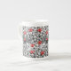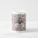jolie porcelaine, bonne dimension effet brillant bien dans l'ensemble. Le motif et les couleurs sont réussis.Je trouve néanmoins dommage de ne pas occuper tout l'espace avc le motif car la partie rouge au dos de la tasse est trop présente et pas intéressante visuellement.