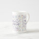 jolie porcelaine, bonne dimension effet brillant bien dans l'ensemble. Le motif et les couleurs sont réussis.Je trouve néanmoins dommage de ne pas occuper tout l'espace avc le motif car la partie rouge au dos de la tasse est trop présente et pas intéressante visuellement.