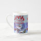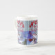 jolie porcelaine, bonne dimension effet brillant bien dans l'ensemble. Le motif et les couleurs sont réussis.Je trouve néanmoins dommage de ne pas occuper tout l'espace avc le motif car la partie rouge au dos de la tasse est trop présente et pas intéressante visuellement.