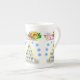 jolie porcelaine, bonne dimension effet brillant bien dans l'ensemble. Le motif et les couleurs sont réussis.Je trouve néanmoins dommage de ne pas occuper tout l'espace avc le motif car la partie rouge au dos de la tasse est trop présente et pas intéressante visuellement.