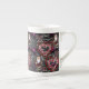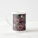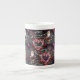 jolie porcelaine, bonne dimension effet brillant bien dans l'ensemble. Le motif et les couleurs sont réussis.Je trouve néanmoins dommage de ne pas occuper tout l'espace avc le motif car la partie rouge au dos de la tasse est trop présente et pas intéressante visuellement.