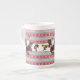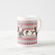 jolie porcelaine, bonne dimension effet brillant bien dans l'ensemble. Le motif et les couleurs sont réussis.Je trouve néanmoins dommage de ne pas occuper tout l'espace avc le motif car la partie rouge au dos de la tasse est trop présente et pas intéressante visuellement.