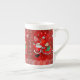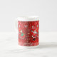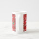jolie porcelaine, bonne dimension effet brillant bien dans l'ensemble. Le motif et les couleurs sont réussis.Je trouve néanmoins dommage de ne pas occuper tout l'espace avc le motif car la partie rouge au dos de la tasse est trop présente et pas intéressante visuellement.