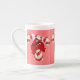 jolie porcelaine, bonne dimension effet brillant bien dans l'ensemble. Le motif et les couleurs sont réussis.Je trouve néanmoins dommage de ne pas occuper tout l'espace avc le motif car la partie rouge au dos de la tasse est trop présente et pas intéressante visuellement.