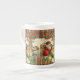 jolie porcelaine, bonne dimension effet brillant bien dans l'ensemble. Le motif et les couleurs sont réussis.Je trouve néanmoins dommage de ne pas occuper tout l'espace avc le motif car la partie rouge au dos de la tasse est trop présente et pas intéressante visuellement.