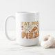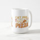 Ce design hilarant déclare votre véritable dévotion à la seule et unique pizza ! "Mange, prie, aime Pizza" est affiché dans une police amusante et colorée, chaque mot éclatant avec une teinte vibrante différente. Le design est entouré d'une célébration de toutes les choses pizza! Des tranches dégoulinant de fromage fondu et vos garnitures préférées, ou peut-être des tranches de dessin animé aux visages expressifs, pourraient orner la chemise. Ce Mug est un must pour tout passionné de pizza qui privilégie le plaisir dans toute sa gloire de fromage.
