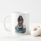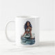 Imaginaire tasse d'une sirène aux cheveux longs et flottants assis gracieusement au-dessus d'un rocher.