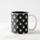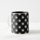 Cool Swirling Suns tressé tasse en noir et blanc. Cette tasse branchée et cool serait une façon parfaite de boire votre boisson chaude préférée avec style, que ce soit à la maison, sur le pouce ou au bureau. Pour donner une touche plus personnelle à cette tasse, customisez-la avec le texte de votre choix.