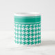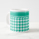 Une Mug de taille Jumbo pour le thé, le café ou la soupe, avec un motif à houndstooth en vert émeraude et blanc tendance. Il y a un bandeau en haut du motif que vous pouvez personnaliser avec un nom ou un texte - ou laisser vide.