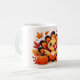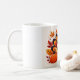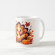 Un mug de Thanksgiving de dinde mignon présentant des couleurs automnales chaudes et un personnage joyeux.
