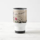 Bonjour, magnifique ! Votre beauté intérieure montre la tasse de voyage avec l'image de broderie, le rose rouge et les motifs de remous créant le visage d'une femme en Bourgogne, rouge, beige, noir et bronze.
