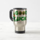 Un Leprechaun amusant en costume vert avec barbe rouge et une pièce d'or à la main vous souhaite bonne chance !