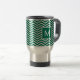 Un chevron motif moderne vert et blanc luxuriant voyage mug. Rendez-le personnel en ajoutant votre initiale au carré monogrammé.