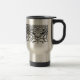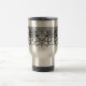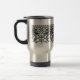Mug noir et blanc avec un design au pochoir victorien élaboré. Il y a des rubans, des feuilles, des tourbillons, des courbes et des points. Avec tous les différents éléments travaillant ensemble dans ce design, je pense qu'il a finalement une qualité délicate et dentée.