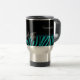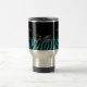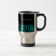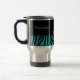 Une tasse mignonne et à la mode de voyage d'impression de zèbre avec les rayures noires et turquoises modernes de zèbre et embellie avec un ruban noir girly imprimé. Personnalisez en ajoutant votre nom à cette conception chic des femmes de noir et de turquoise. Perfectionnez pour le fashionista élégant dans n'importe quelle fille de l'adolescence !