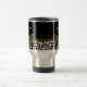 N'importe quelle fille sophistiquée de la mode adorerait que son nom soit personnalisé sur cette tasse de voyage empreinte de léopard en noir et blanc à la mode avec un élégant ruban brun foncé attaché dans un arc chic. Image imprimée plate, pas le ruban réel.