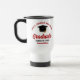 Cette tasse de voyage moderne en écriture rouge personnalisée pour les étudiants de troisième cycle comprend votre nom de lycée ou de collège pour la classe de 2025. Customisez avec votre année de graduation sous le script manuscrit chic et le casquette noir grad pour une grande fête de graduation personnalisée faveur cadeau.