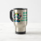 Inhale Peace, Exhale Hop-Piness drôle, mignonne grenouille pratique la méditation et réfléchit sur l'importance de juste respirer. Coloré en vert et rose, sur une Mug Voyage/Commuter.