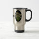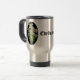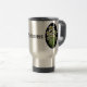 Jolie tasse de voyage, avec l'illustration graphique originale des fleurs alpines blanches appelées Edelweiss, contre un ovale noir, des deux côtés de la tasse. Le texte de style vieux monde noir, au milieu lit, Edelweiss, et peut être personnalisé pour lire ce que vous voulez.