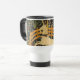 Mug de voyage avec la tapisserie médiévale La licorne en captivité (1495-1505). La septième tapisserie de The Unicorn Tapestries, également connue sous le nom de The Unicorn Rests in a Garden, montre une licorne blanche avec un collier bleu assis à l'intérieur d'une clôture. L'herbe verte et de belles fleurs entourent la licorne. Un cadeau fantastique pour les collectionneurs d'art médiéval et les amateurs d'imaginaires !