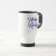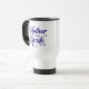 Cette tasse de voyage est montrée avec une mère de l'empreinte de la mariée; la couleur du texte est bleu royal. Customisez cet objet ou achetez tel que conçu. Image sous licence