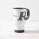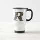 Monogram letter R filled with delicate white hydrangea flowers personalized travel coffee or tea mug. Click on Customize to add text. Great gift idea. This image is available on many products in my gallery.