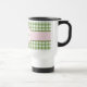 Une tasse mignonne de voyage de monogramme de guingan de vert de style campagnard avec un étiquette rose de guingan et un ruban rose en filigrane girly. Personnalisez en ajoutant votre nom et initiales. Fera appel à la fille élégante et féminine.