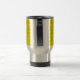 Un très élégant Travel Mug sans déversement, dans le Tendance Lemon Zest jaune avec des pois blancs. Vous pouvez ajouter du texte ou un nom à la bande ordinaire en haut ou le laisser vide.