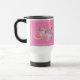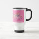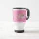 Cette tasse de voyage a un arrière - plan rose sur le blanc avec des images de coquillages de couleur rose de l'extérieur de la tasse de côté en côté. Coordonner la poignée et le couvercle noirs. Achetez comme indiqué ou customisez à votre préférence.