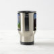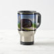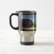 LES OBJETS DANS LE RETROVISEUR SONT PLUS PROCHES QU'ILS NE LE PARAISSENT - C'est le texte sur ce mug de voyage d'une photographie originale de ZoeSPEAK, prise lors d'un trajet sur la route à la sortie de Key West, en Floride. La photo est une vue à travers la fenêtre du camion du rétroviseur et du paysage des Keys, du grand ciel bleu, des nuages floconneux, des eaux du golfe et de la verdure. Derrière la partie supérieure gauche du miroir se trouve un panneau routier jaune et noir. Ceci est reflété dans la fenêtre du camion comme une barre jaune diagonale dans le coin supérieur gauche de l'image.
