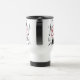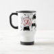 Claviers de piano modernes et élégants, clarinettes et notes de musique en noir et blanc et personnalisées avec un élégant monogramme de script éditable dans un échantillon de couleur rouge sur l'avant et l'arrière de cette tasse de voyage. Idéal pour le musicien qui joue principalement du piano et de la clarinette. Contactez le concepteur AVANT DE COMMANDER via Zazzle Conversation ou makeitaboutyoustore@gmail.com pour des modifications de conception, de l'aide pour personnaliser ou transférer le design.