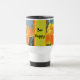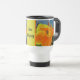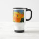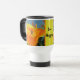 Ajoutez une éclat de couleur et un peu d'humour à votre thé ou café du matin avec cette tasse de voyage avec un lis jaune et orange vif. Cette fleur est visitée par une grande abeille entourée du motif tacheté de cette grande fleur. L'eau bleue muette et le feuillage vert permettent à la fleur de prendre le centre de la scène. La fleur apparaît de part et d'autre de la mug du matin, accompagnée d'une bannière centrale orange et jaune avec "Bee Happy". Tout le texte peut être customisé.