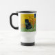 Travel Mug avec un chat noir dans le style de Van Gogh! Ce chaton noir est assis par une chaise sur un sol vert contre un arrière - plan de décoration Starry Night. Un cadeau fabuleux pour les amoureux de les chats et les collectionneurs d'art hollandais !