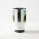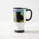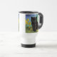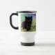 Travel Mug avec un chat noir dans le style de Van Gogh! Un kitty noir moelleux est assis à côté des fleurs jaunes contre un arrière - plan vert et bleu. Un cadeau amusant pour les amoureux de les chats et les collectionneurs d'art hollandais !