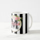 Mug décoratif floral rayé noir et blanc