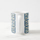 Cette jolie tasse à courtepointes présente le design d'une courtepointe motif à roue de puzzle de l'artisan américain du XXe siècle Ira Blount. Les formes géométriques, dans les tons bleu, blanc et gris, créent un motif général agréable. Un look rustique et traditionnel qui a aussi une touche contemporaine et graphique, cette tasse fait un cadeau original pour la quilter, l'égout ou l'amant antique dans votre vie. Couette originale dans le Musée communautaire d'Anacostie de l'Institution Smithsonian.