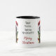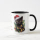 Sur cette tasse, un chat noir à l'allure déroutante est enchevêtré dans un chapelet de lampes d'arbres de Noël. Le chat porte un casquette du Père Noël rouge et blanc. L'image est imprimée deux fois sur la tasse, avec des champs de texte entre les images. Actuellement le texte dit "Cher Père Noël, Définissez NAUGHTY" et "Joyeux Noël". Vous pouvez facilement changer le texte à n'importe quoi d'autre que vous voulez, et le personnaliser, également. Mignonne pour les enfants et les adultes, surtout s'il y a un chat malicieux dans la maison !