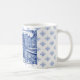 Coffee mug in a Delft Blue style with an image of Amsterdam. Generative content with photography by Velvet Escape.