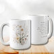 Delicate Watercolor Wildflowers in Neutral Colors Inspirational Poem 15 Ounce Coffee Mug... A chic delicate bouquet of watercolor wildflowers is set on one side of the mug with an inspirational poem in elegant serif typography on the other side. The nature-inspired poem reads: "Wildflowers grow without a gardener. They just know how. They cycle through the seasons With life's imprint in their seeds And when they blossom, The world becomes a softer, richer place". You can easily revise the example name below the poem using the personalization tool. The poem is © 2001 Barbara Casey.