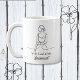 Une tasse à café sentimentale et douce pour demander à quelqu'un d'être ta demoiselle d'honneur pour ton mariage. Cette tasse est décorée d'une simple et élégante illustration représentant une demoiselle d'honneur, une robe de mariée, un bouquet de fleurs et des talons hauts. À l'intérieur, une citation drôle et spirituelle.