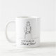 Une tasse de café sentimentale et douce demandant à quelqu'un d'être votre témoin d'honneur pour votre mariage. Cette tasse est décorée d'un simple et élégant dessin au trait illustrant une demoiselle d'honneur, une robe de mariée, un bouquet de fleurs et des talons hauts. À l'intérieur se trouve une citation drôle et spirituelle.