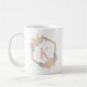Cette tasse de café pour demoiselle d'honneur au monogramme et à la couronne florale pastel est un souvenir qu'elle utilisera longtemps après le jour du mariage.