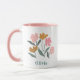 Tasse démoiselle d'honneur illustrée botanique avec nom personnalisé et poignée rose