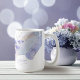 Cette élégante collection de mariage utilise une palette de couleurs saisissante comprenant le bleu pervenche, le prune et les bleus doux pour créer de la papeterie assortie et des fournitures de fête pour votre jour spécial. Les florales à l'aquarelle et les traits de peinture scintillants offrent des arrière-plans accrocheurs. La tasse à café, présentée ici pour une demoiselle d'honneur, peut également être utilisée pour tout autre membre important du cortège de mariage. Un modèle est fourni pour ajouter facilement un nom personnel et un titre de membre du cortège de mariage ainsi que la date de votre mariage. Recherchez l'ID940 pour voir tous les produits de cette collection de mariage.