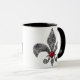 Blanc et noir11 oz. tasse combo avec une image, de part et d'autre, d'une fleur de lis en dentelle noire avec détail de coeur en rubis. Voir la bocal à bonbons, tasse à expresso, lanceur, plaque en papier, verre à balles, théière et dessous de verre. Voir l'ensemble de la collection Cancan Mug dans le FOOD/BEV | Section Plats.
