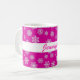 Tasse de café en blanc, flocons de neige 3d contre un arrière - plan fuchsia/magenta profond, avec texte personnalisable