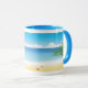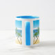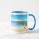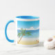 Blanc et bleu clair 11 oz. combo tasse avec une image de dessin animé d'une journée parfaite sur une île déserte, avec un palmier, des noix de coco et la mer d'un bleu profond. Voir la bocal à bonbons, tasse à expresso, lanceur, plaque en papier, verre à balles, théière et dessous de verre. Voir l'ensemble de la collection Shipwreck Candy Jar dans le FOOD/BEV | Section Plats.