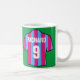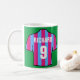 Cadeau pour un fan de football. Mug avec une chemise de football en clarette et bleu. Personnalisez avec votre choix de nom et de numéro.