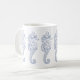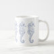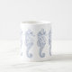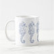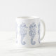 Dessin d'une image de style vintage d'un cheval de mer dans un gris bleu doux et muet sur une rangée de six. Ajoutez un message texte personnalisé pour créer un cadeau cool pour lui. Tasse à café bleu et blanc. Vous pouvez effacer les images dupliquées et créer un design avec un ou deux chevaux de mer.